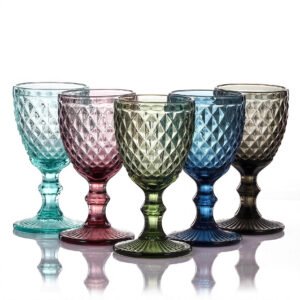 Crafted with exceptional precision, each wine goblet showcases a diamond crystal pattern that reflects and refracts light, creating mesmerizing visual effects. The vibrant, colorful glass enhances the appeal of your tableware while highlighting your wine’s rich hues. With a generous 300ml capacity, these goblets are perfect for serving a variety of wines, cocktails, or beverages in style. Whether for personal use or special celebrations, these glasses strike the perfect balance between practicality and design.