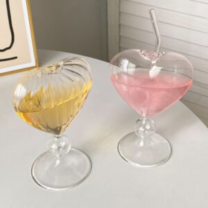 Be the first to review “Handmade Heart Shape Straw Cup High Borosilicate Glass Cup bar Ware with Glass Straws Stem Glass Cup glassware Bar Accessories”
