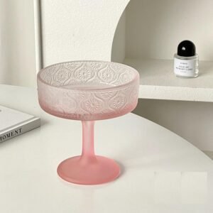 Be the first to review “High Quality Frosted Ice Cream Cup Glass Yogurt Fruit Mousse Pink Goblet Embossed Bowl”