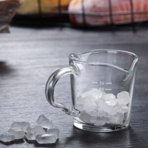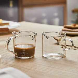 The 70ml capacity of this milk jug strikes the perfect balance between utility and convenience. Whether you’re prepping a precise espresso shot, measuring ingredients for recipes, or even frothing milk for your cappuccino, this jug excels in making every task seamless. Equipped with a double-mouthed spout, you can achieve effortless pours on both sides, ensuring precision for latte art or controlled addition to your coffee creations. Its transparent glass construction not only allows for visual accuracy but adds a touch of sophistication to your kitchen tools.
